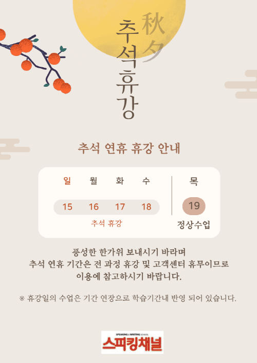 추석 연휴 휴강 안내