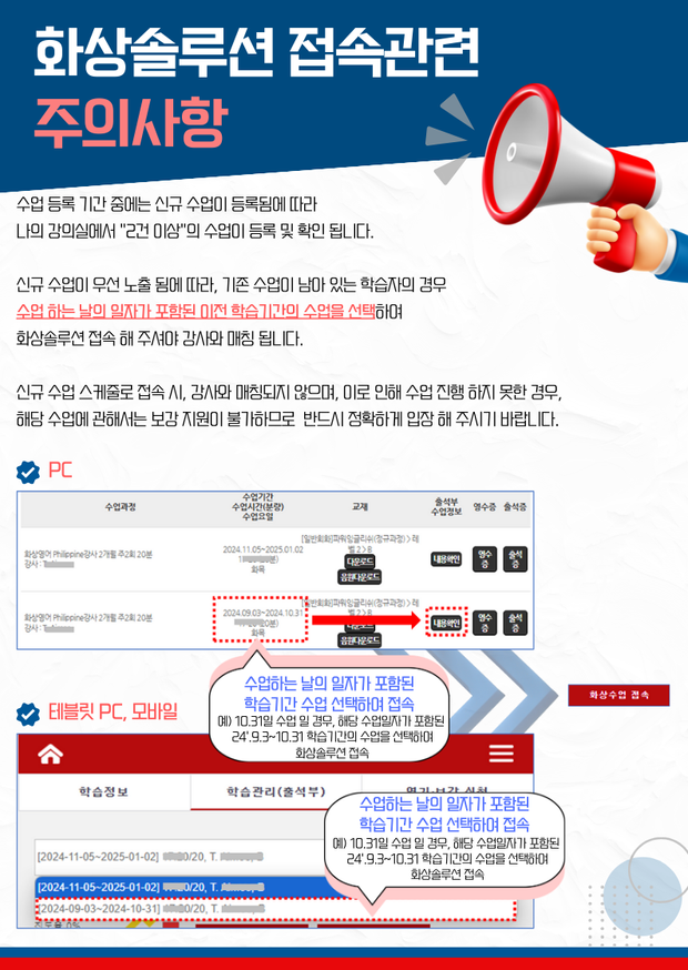 [재수강 및 2과정 이상 수강시]화상수업관련 주의사항