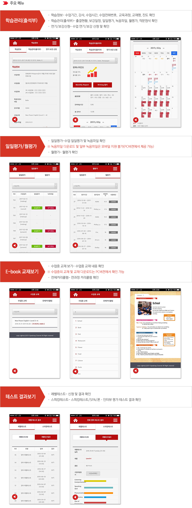모바일 앱 출시 되었습니다. 관련하여 기존에 제공된 수업 전, SMS발신은 2/28일까지만 서비스 지원이 되며, 이후 모바일 앱 알림으로 서비스 이용이 대체됨으로 각 학습자 여러분은 사용하시는 모바일 기기에 따라 앱 설치 및 이용하여 주실 수 있도록 하여주세요.